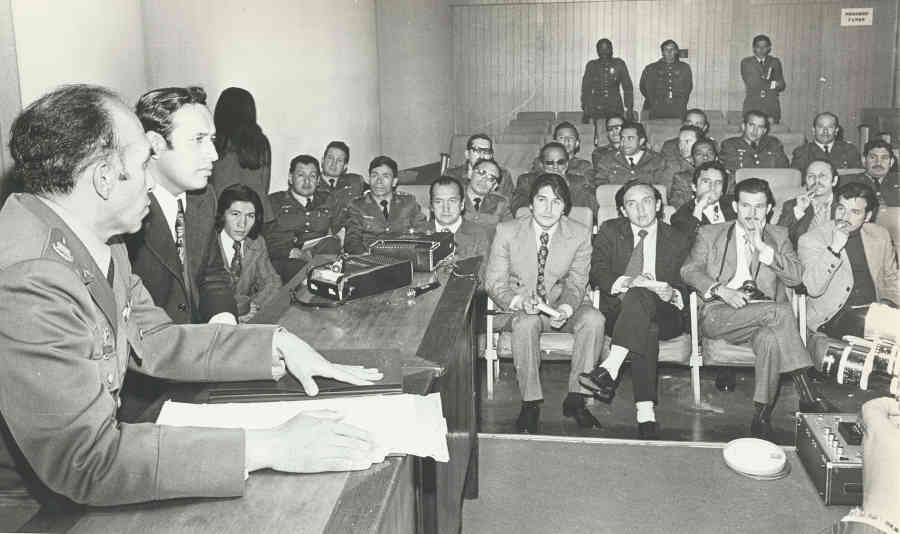 Sentados, en la primera fila de la gráfica y de izquierda a derecha, aparecen los periodistas Kilian Guarín, de la Sección Bogotá de EL TIEMPO y quien años después desempeñó el cargo de Jefe de Prensa de la Empresa de Teléfonos de Bogotá (ETB); Jorge Orjuela Solano, Jefe de la Oficina de Prensa de la Alcaldía Mayor de Bogotá en la época de Carlos Albán Holguín (de traje claro); Ricardo Cañón, de EL ESPECTADOR (de traje oscuro); Miguel Ángel Molina, de la Redacción Judicial de EL TIEMPO y Víctor Castro, del diario EL ESPACIO.