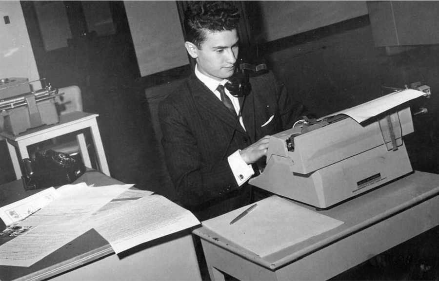 Escribo este artículo como un modesto homenaje a la memoria de quien primero me rescató de la caja de madera en la cual permanecí hasta los cinco años de edad entre lingotes de plomo, después me brindó la oportunidad de convertirme en trabajador de la Armada limpiando “espacios” de Linotipos en el sótano del “Edificio Monserrate”, del centro de Bogotá; agradeció personalmente las correcciones de ortografía que yo le hacía a los ejemplares del periódico publicado, me ascendió a “Mensajero de la Redacción” a los 12 años y por último me permitió recibir por teléfono las noticias de los corresponsales, quienes con sus experiencias diarias se convirtieron en los Decanos del Periodismo que nunca pude estudiar en una Universidad. La forma como desempeñaba esa labor, a pocos pasos de la oficina de Don Gabriel, se observa en la siguiente gráfica. (Fotos Cortesía de EL ESPECTADOR).